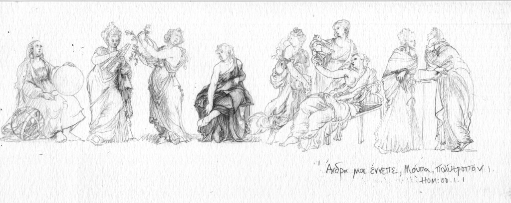 Hom.Od.1.1 Άνδρα μοι έννεπε, Μούσα, πολύτροπον. 300 x 1000 mm pencil on paper