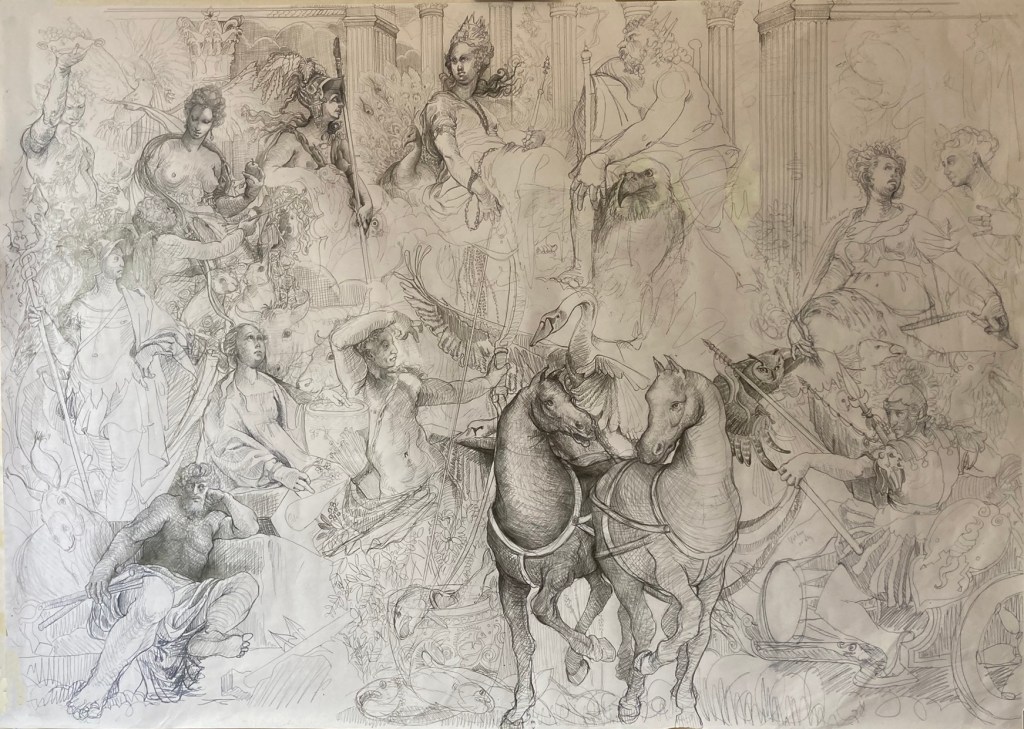 Hom.Od.1 θεῶν άγορά (God’s Assembly). 841 x 1189 mm. pencil on paper