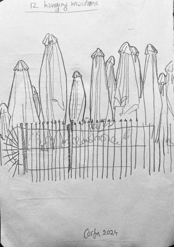 They reminded me of the 12 hung handmaidens punished by Odysseus and Telemachus. Hom.Od.22.410-479